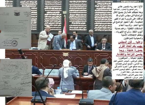 نص رسالة مجلس النواب إلى الرئيس هادي بشأن تغيير الحكومة